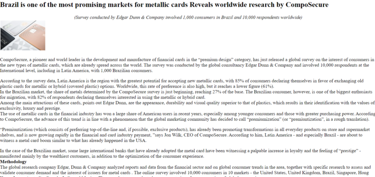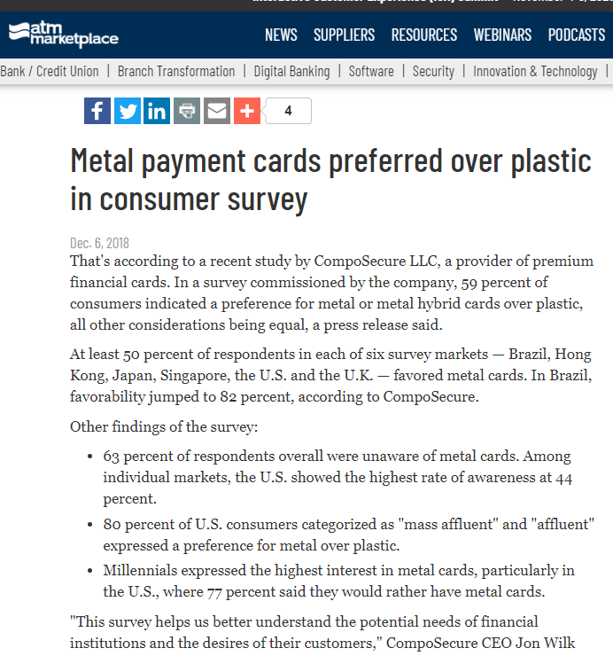 OWC orchestrated media coverage in every key international markets targeted by CompoSecure to promote interest in metal cards within the specific region.
