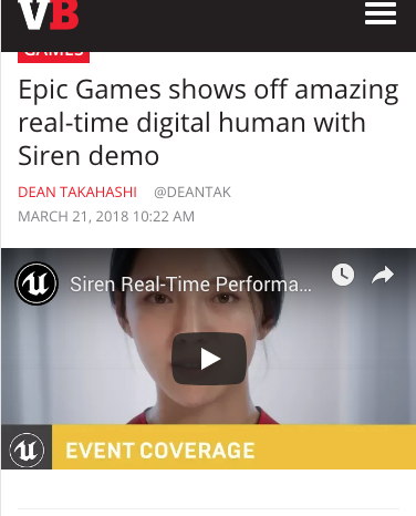 Cubic Motion took its first step in transforming the digital entertainment industry with its digital humans technology platform. Cubic Motion’s goal was to attract new partners, investors, entertainment industry executives and customers with its the real-time facial performance of a digital human personality, codenamed “Siren,” which was created to demonstrate at the Game Developers Conference (GDC) in San Francisco.