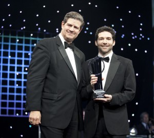 Jeff Weiner of LinkedIn accepts the trophy as Ernst & Young’s National Entrepreneur Of The Year® 2011 Overall Award Winner from Jim Turley, Chairman and Chief Executive Officer of Ernst & Young.